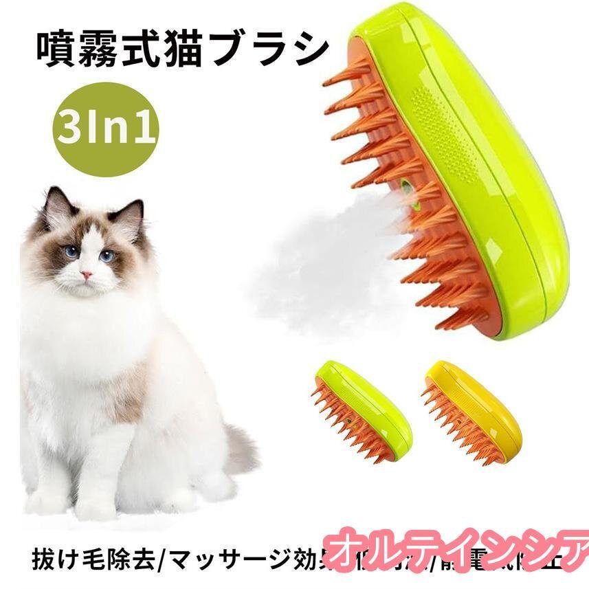 - 猫スチームブラシ 3in1 蒸気 ペット ブラシ 抜け毛除去 グルーミングブラシ 充電式 噴霧式 ペットコーム 痛くない 犬 猫 ブラシ マッサージ