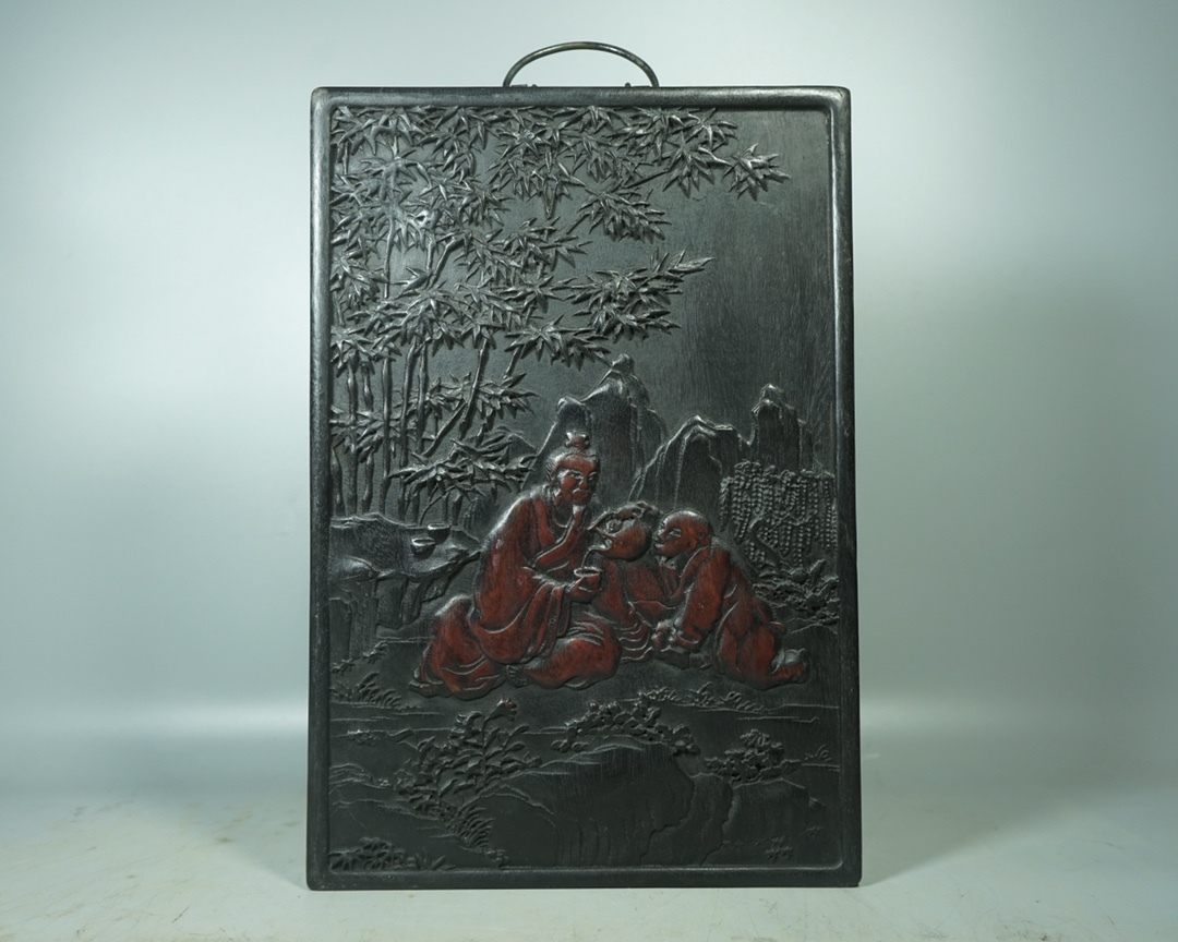 - 【蔵友館蔵品・黒檀木製・細密彫・茶聖陸羽・掛額・置物・文房賞物】・古董品・中国古玩・時代物・希少珍品・中国時代美術