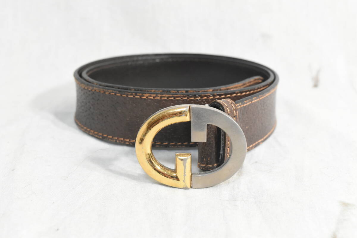 - GUCCI グッチ オールドグッチ レザー ベルト GGロゴ ゴールド×シルバー金具