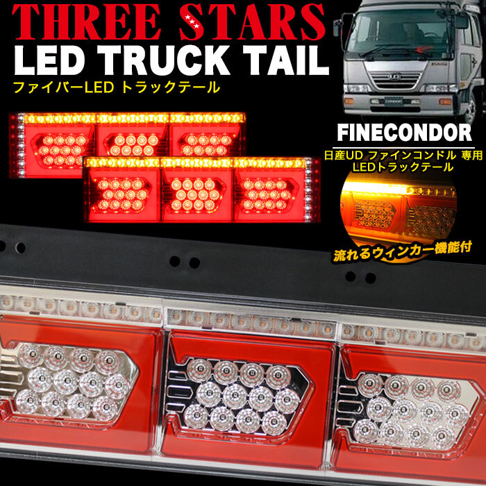 > 【レッド×メッキ】 ファインコンドル 日産 UD LED テール ライト ランプ シーケンシャル Eマーク FJ5158