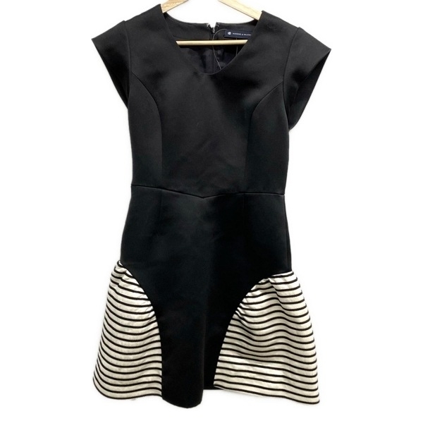 > ボーダーズアットバルコニー BORDERS at BALCONY サイズ36 S - 黒×アイボリー レディース Vネック/半袖/ミニ/ボーダー ワンピース