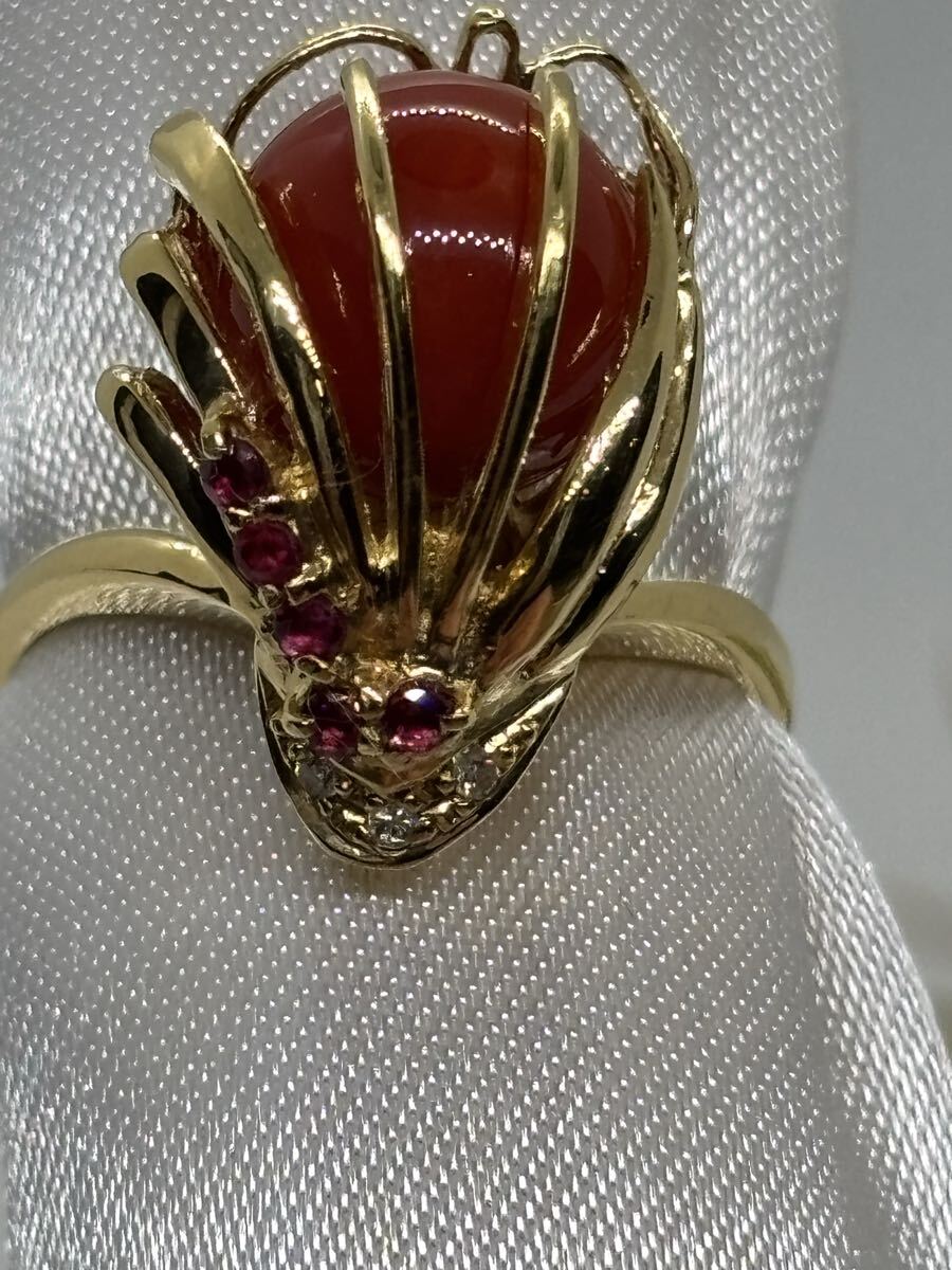 - 新品//K18/D0.02ct /天然血赤珊瑚 /国産/素敵な指輪リング(943) アクセサリー 天然サンゴ