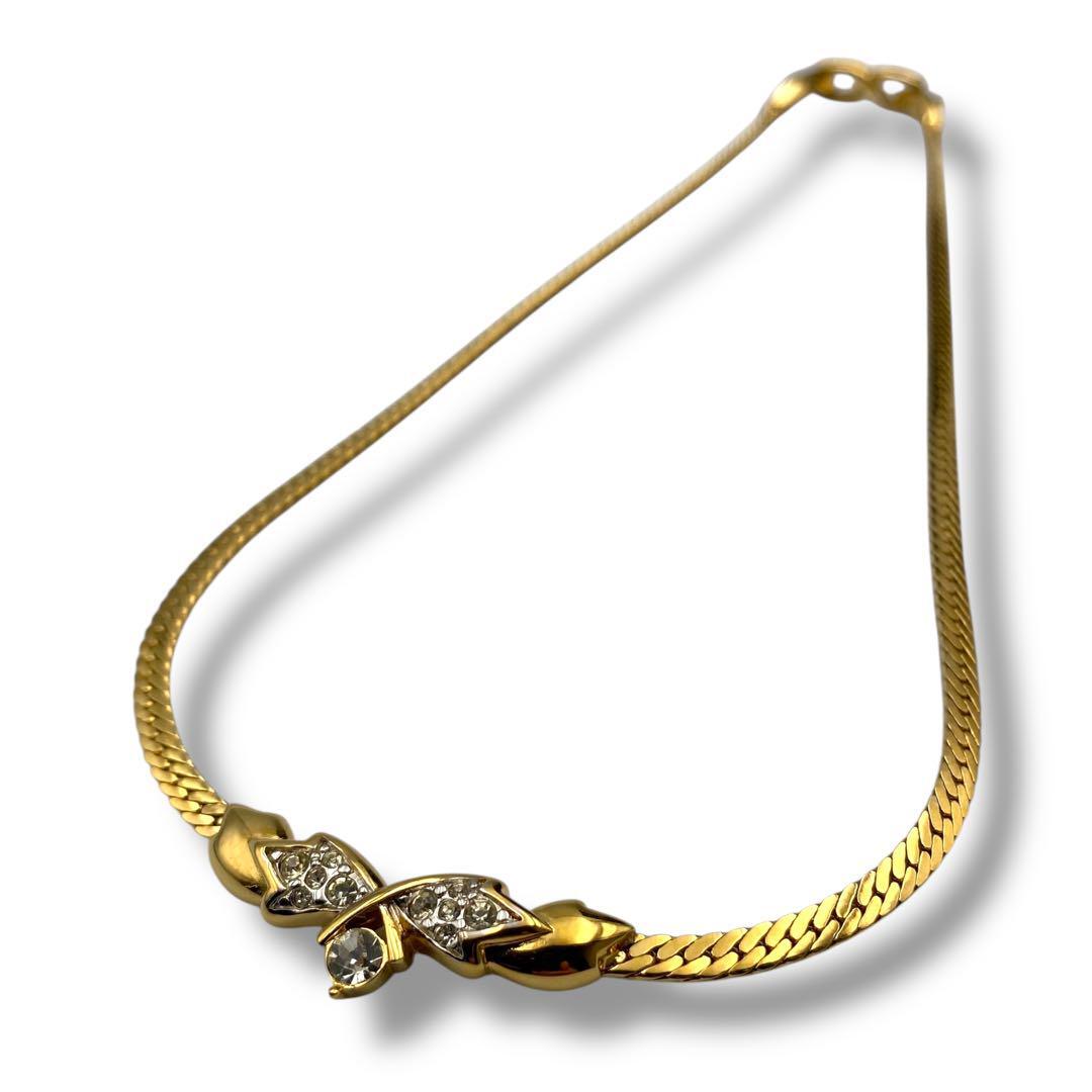 - 新品未使用級 ニナリッチ ネックレス 喜平チェーン ラインストーン リボン ゴールド