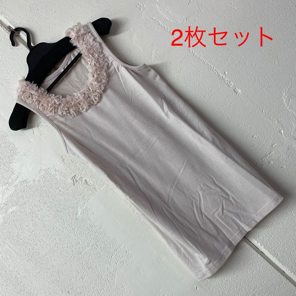 - Mサイズ首元モチーフタンクトップ ベージュ2枚セット
