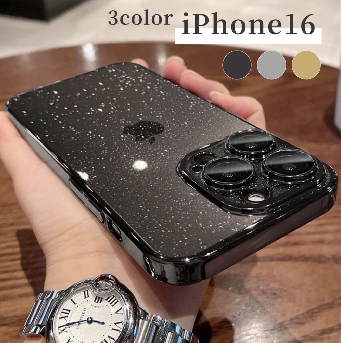 - 在庫限り iPhone16 ケース メタリック カメラレンズ保護 キラキラ ブラック お洒落