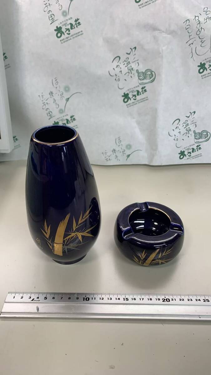 > S1-9-3→応接揃 灰皿&花瓶 セット 灰皿 花瓶 幸泉窯 置物 骨董品 木箱付陶磁器