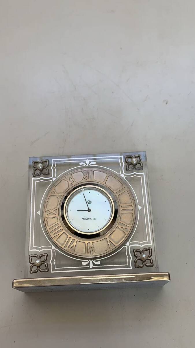 > S1-8-3→ 【平成レトロ】ミキモト クォーツ置き時計 電池ないため、動くかどうかがわかりません 昭和レトロ 未検品