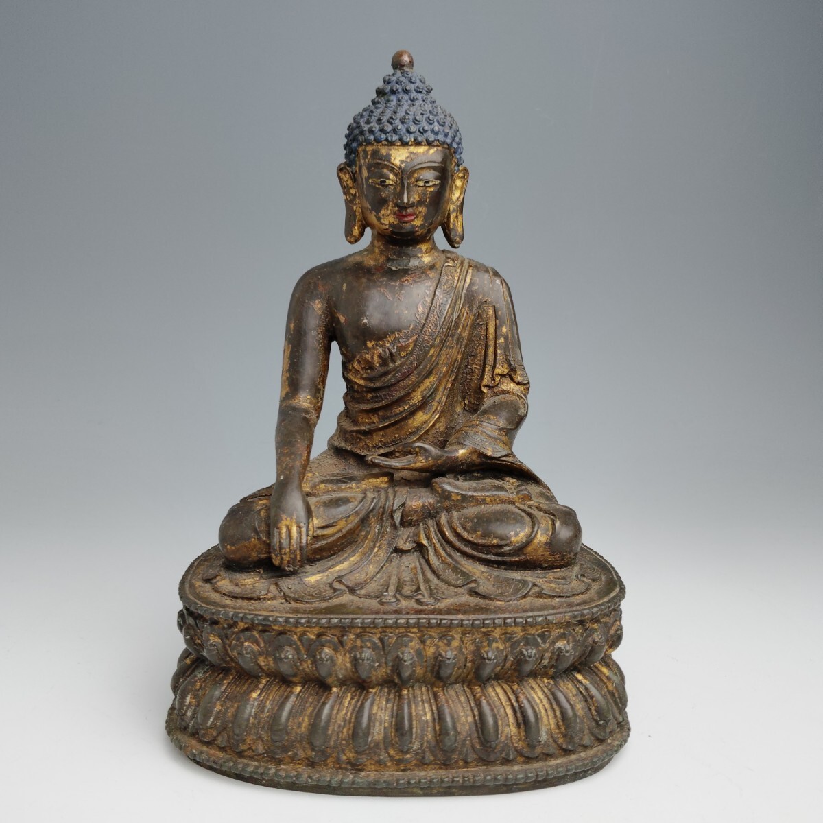 - 唐物 塗金佛陀坐像 銅製 仏教美術 H22.5cm 重さ2.8kg 中国古美術 古玩 B4-88 銅塗金 仏像