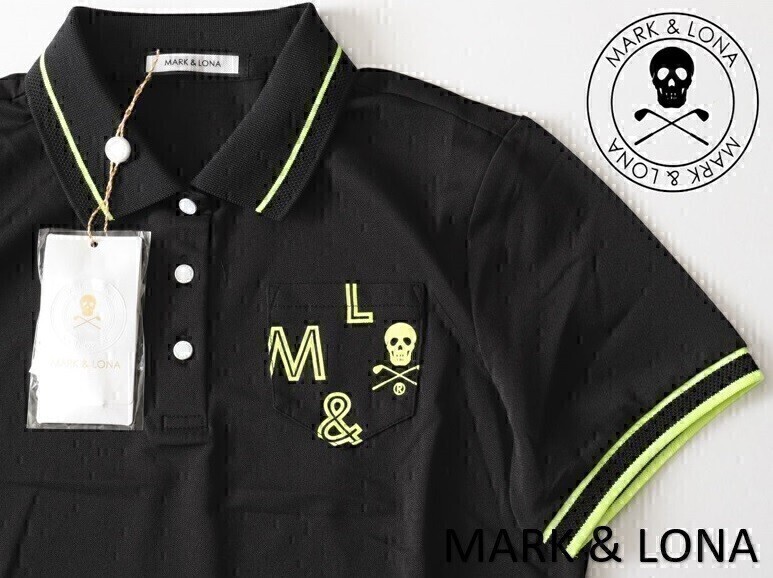 - ★韓国限定★MARK&LONA マーク&ロナ★MLスカルロゴ 鹿の子速乾素材 半袖ポロシャツ38★M【MTW-1B-AP71】ブラック黒【本物保証】日本未発売