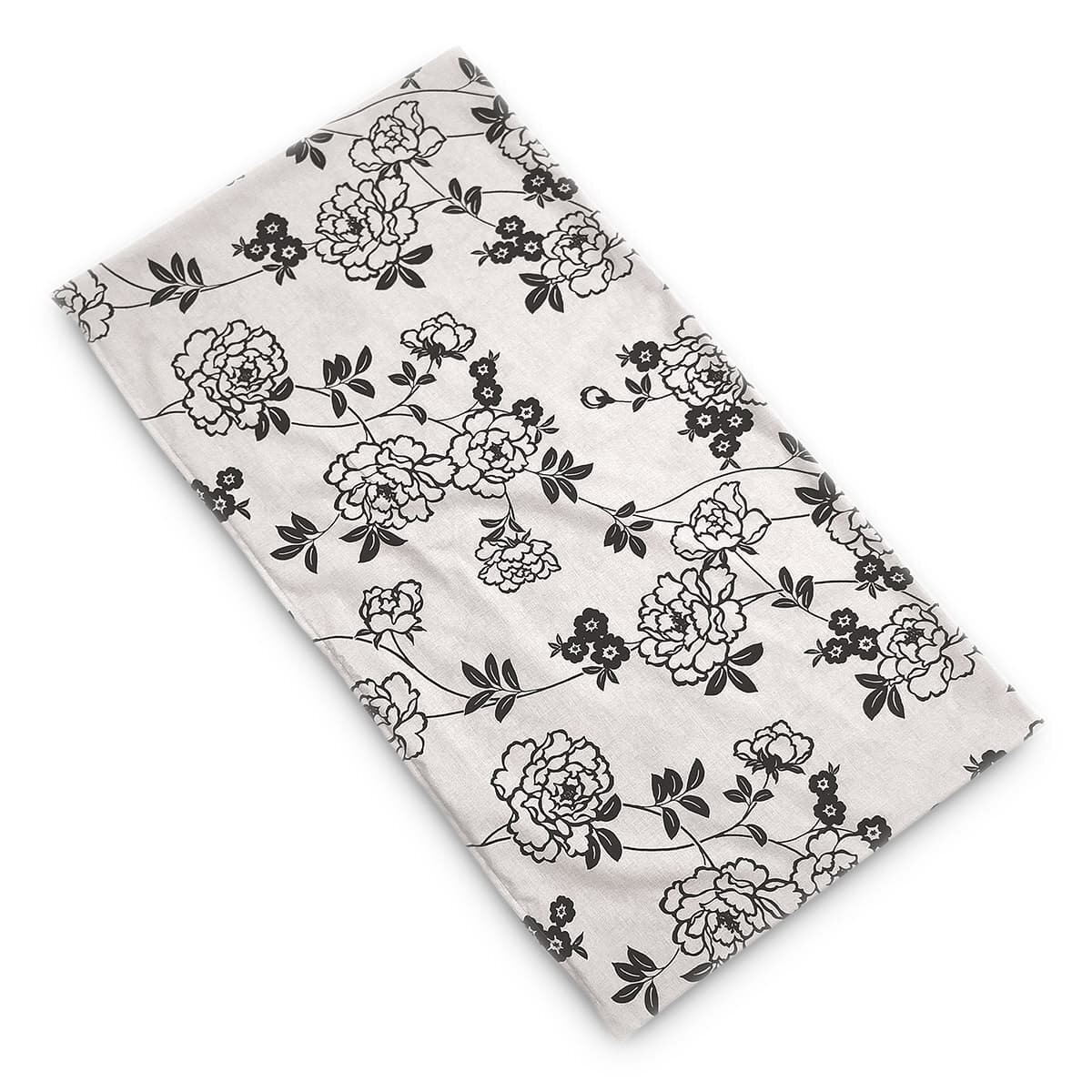 - 長座布団カバー 約60×110cm 普通判 関東判 ぼたん すみくろ 綿100% 北欧系 花柄 フラワー 植物 草花 素縫い 両面共生地 ファスナー開閉式