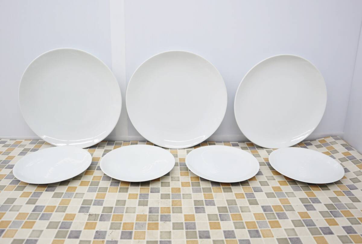 - △シンプル 和 洋食器 白いお皿|大皿 中皿 プレート 合計7枚 セット| 盛皿 丸皿| 直径36.5cm×3枚 24cm×4枚 ■O0775