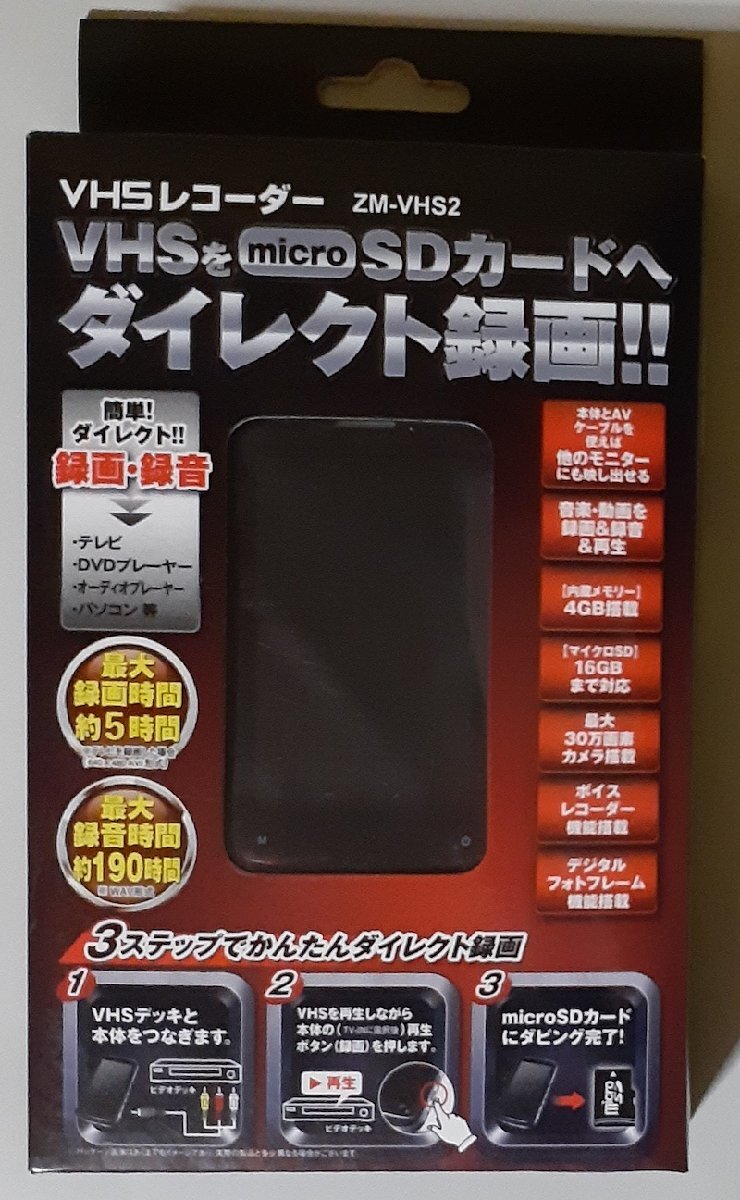 > 6229 未使用 ZM-VHS2 VHSをmicroSDカードへダイレクト録画!! 内蔵メモリ4GB 30万画素カメラ ボイスレコーダー 株式会社レボリューション