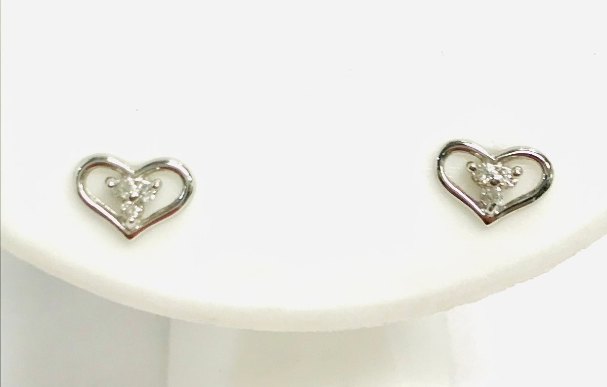 - K14WG ホワイトゴールド 3Pダイヤモンド 0.02/0.02ct ハートモチーフ スタッドピアス qoj.YPB39