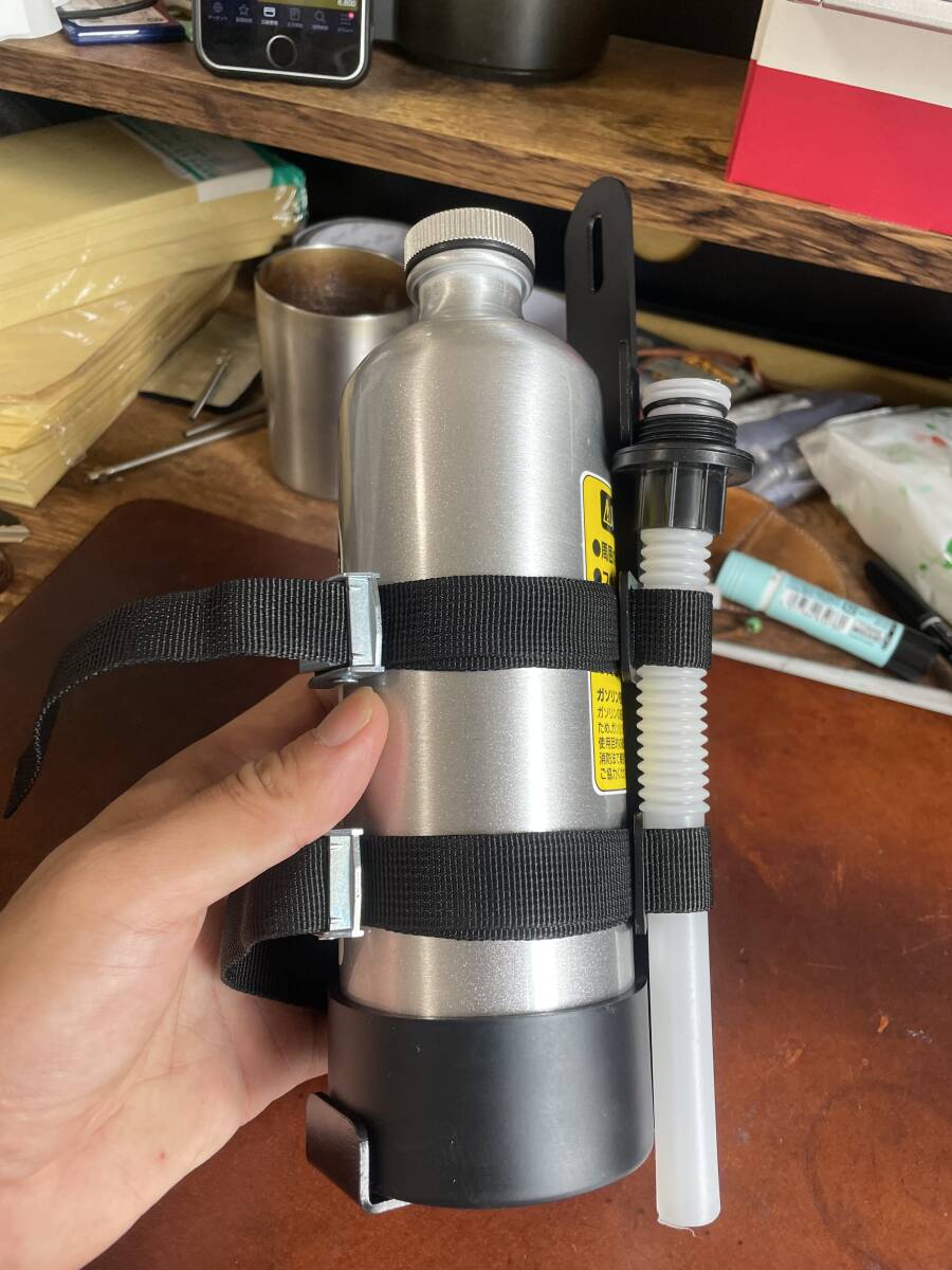 - ワンオフ! 750㏄ 携行缶+ホルダー1っ式 ツーリング系カブ、ハーレーなどに