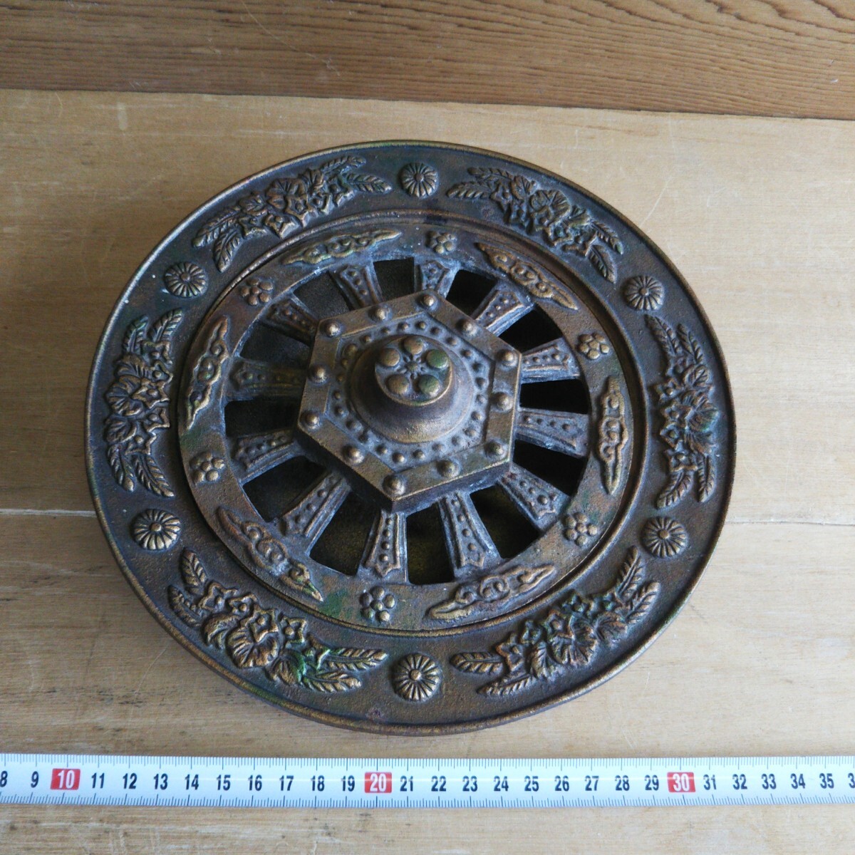 - 251003 装飾灰皿 銅器 昭和レトロ アンティーク コレクション 古灰皿 車輪 菊 小花