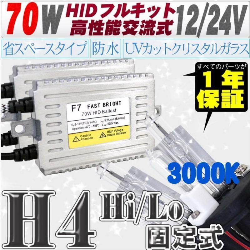 - 高性能 薄型HIDキット 70W H4 Hi/Lo 固定式 3000K 12V 【交流式バラスト&クリスタルガラスバーナー】