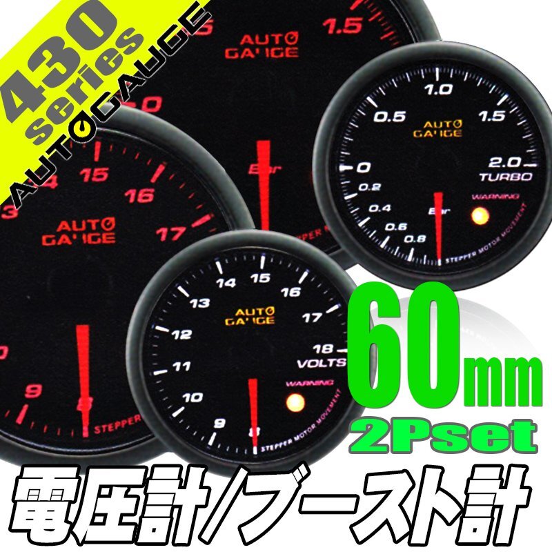 > オートゲージ ブースト計 電圧計 60Φ 2連メーター 430 2点セット 日本製モーター ワーニング セレモニー 60mm 430AUTO60A2SET