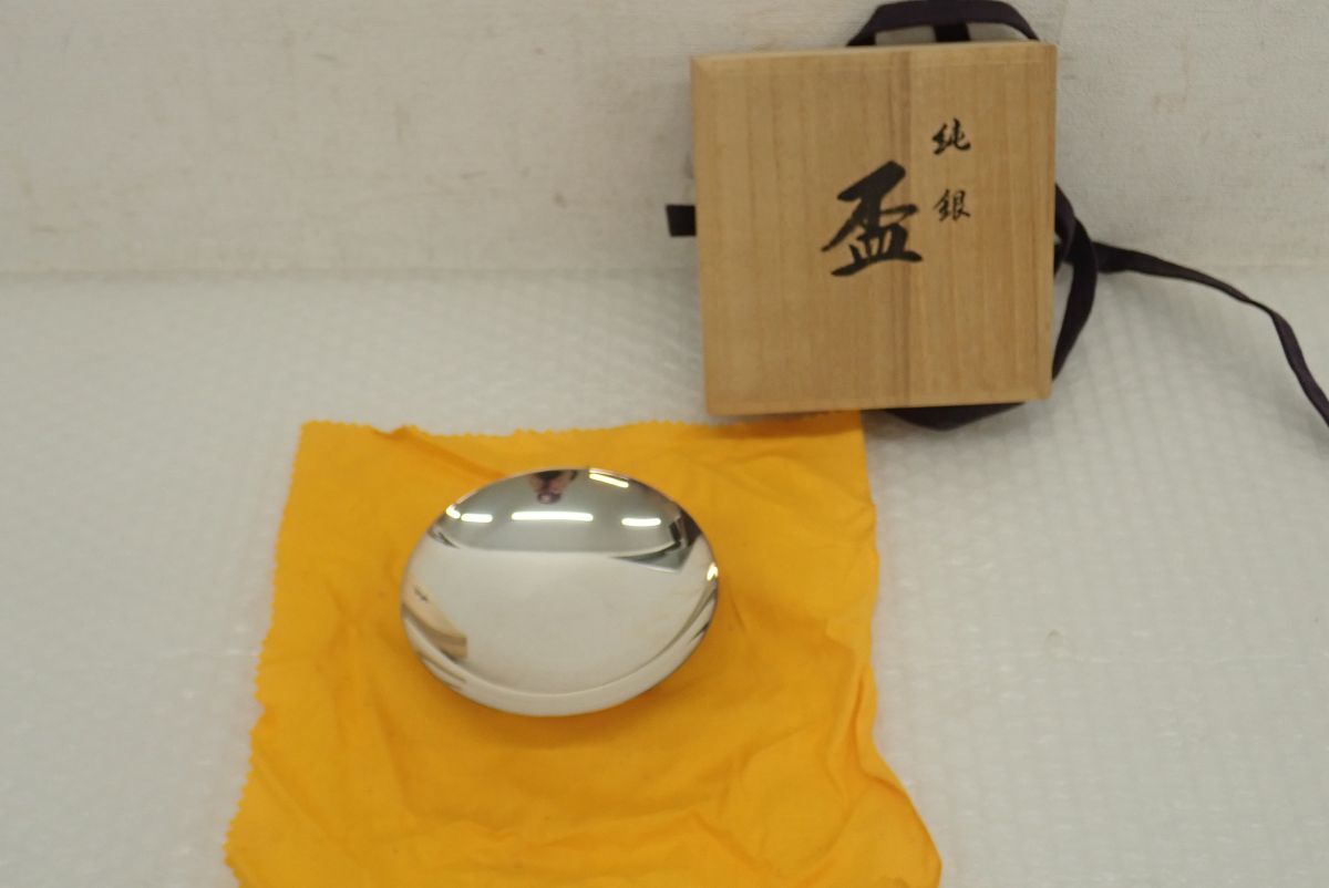 > D321-60 ②純銀 銀杯・銀盃 銀婚式祝い品 重量 95.2g 直径10.5 純銀刻印 共箱・共布 pure silver・シルバー