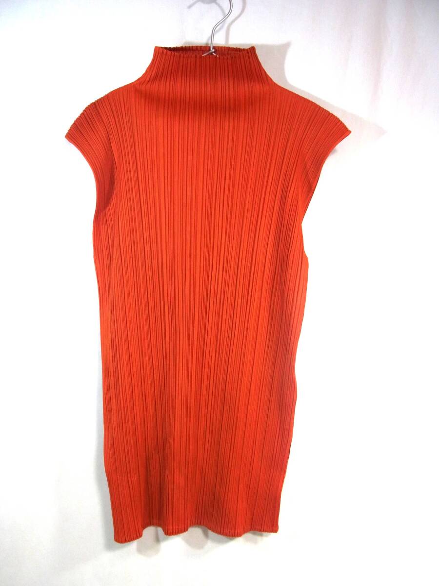 - ②USED イッセイミヤケ ISSEY MIYAKE プリーツ プリーズ PLEATS PLEASE ハイネックノースリーブシャツ 3 朱色