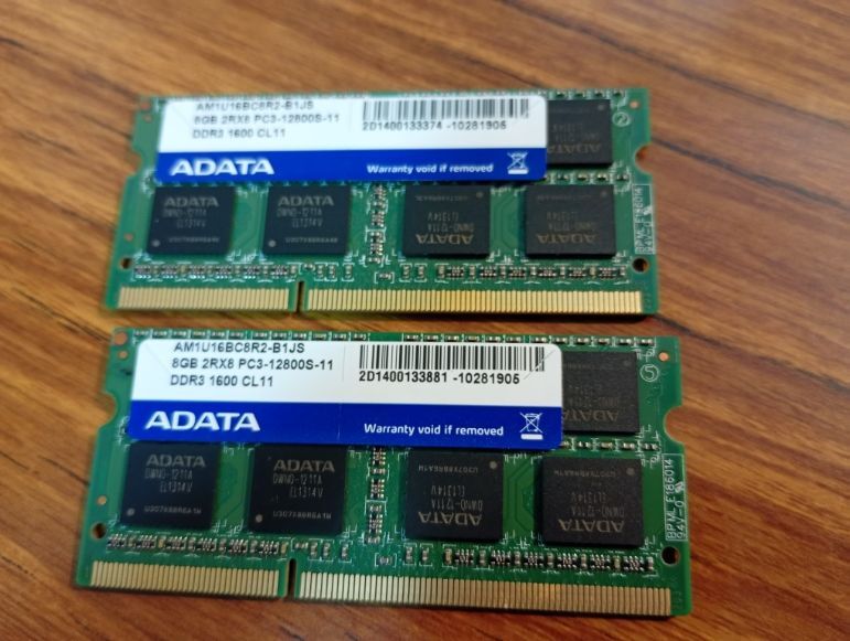 - 【1.5v】 合計16GB(8GB×2枚) PC3-12800S 青ADATA 揃いペア (マウスコンピュータ側管理シール連番) 管699