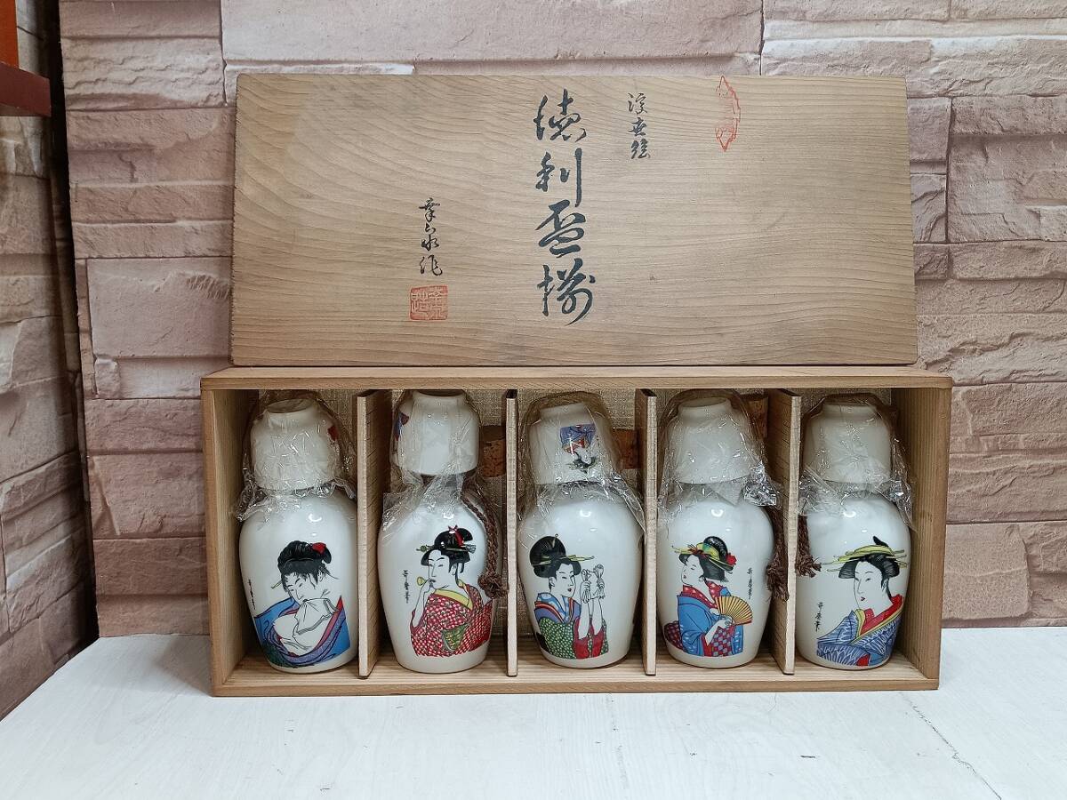 - 【5点セット】とっくり おちょこ 浮世絵 陶器 徳利 猪口 浮世絵柄 酒器 レトロ 酒入れ 金彩