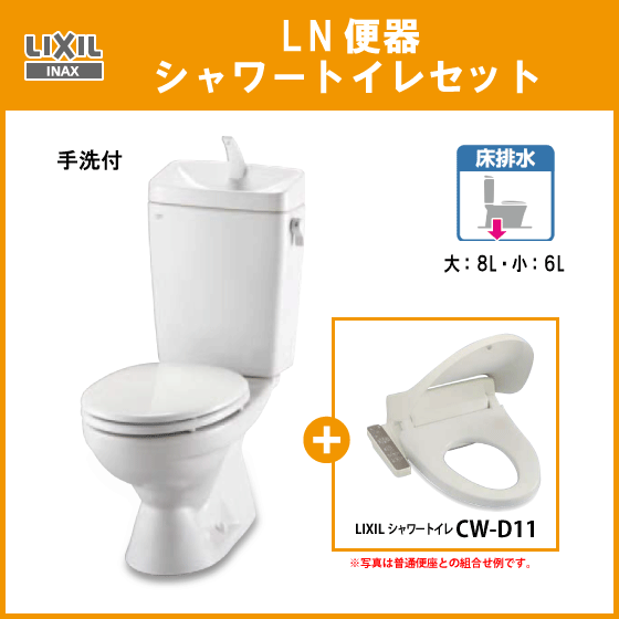 - 便器 LN便器(手洗付) シャワートイレセット(商品カラー:オフホワイト) C-180S,DT-4840,CW-D11 リクシル イナックス LIXIL INAX