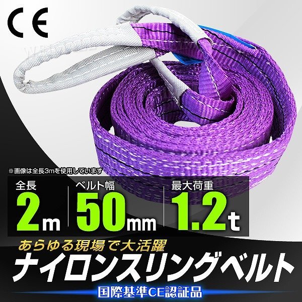 - 【送料無料】スリングベルト 耐荷1200kg 長さ2m×幅50mm 両端アイ型 ナイロン スリング ベルト 玉掛け 荷揚 荷吊りベルト 牽引 高耐久