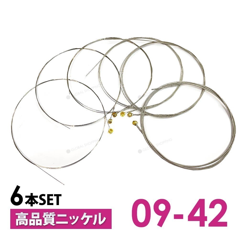 > エレキギター ギター 弦 6本 セット ニッケル ゲージ:09-42(.009-.011-.016-.024-.032-.042) スーパーライトゲージ ストラト テレキャス
