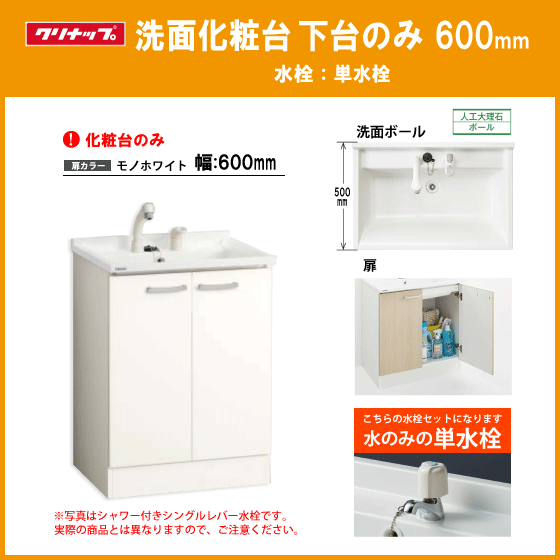 - 洗面化粧台 下台のみ(ミラー部なし) 単水栓 幅:600mm BGAL60TNTEWJTS クリナップ BGAシリーズ