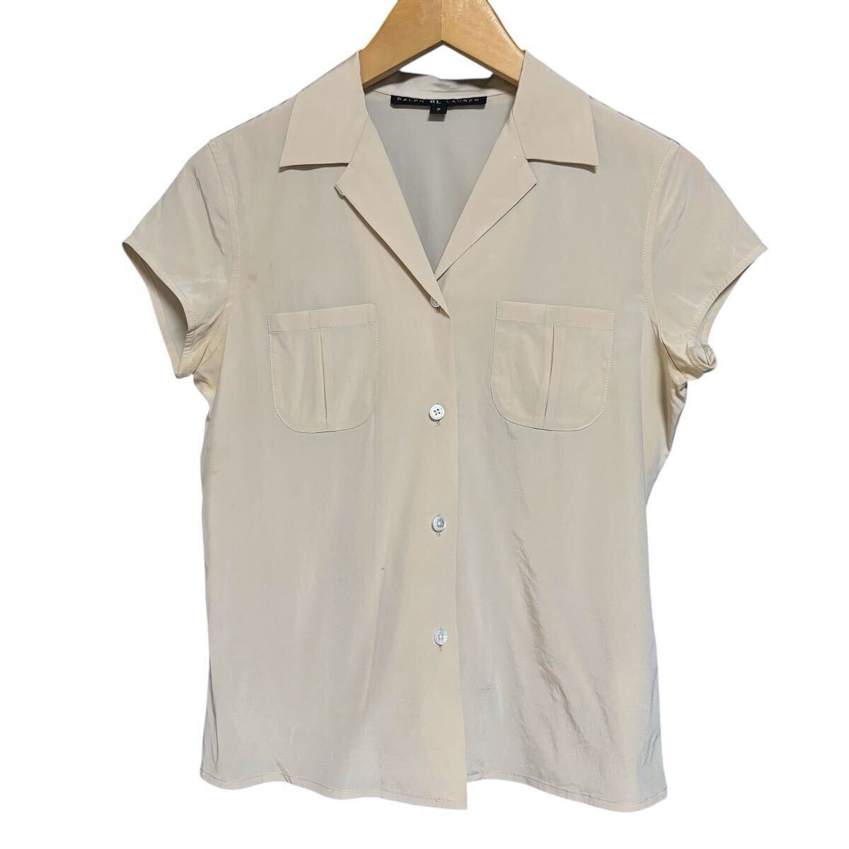- ※I RALPH LAUREN ラルフローレン 半袖オープンカラーシャツ ベージュ シルク ポリウレタン サイズ7 レディース S相当