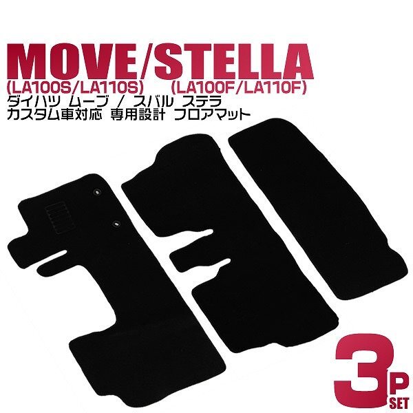 > ダイハツフロアマット 3点セット ムーブ LA100S LA110S スバル ステラ LA100F LA110F カスタム車対応 難燃性 ヒールパッド カーマット 黒