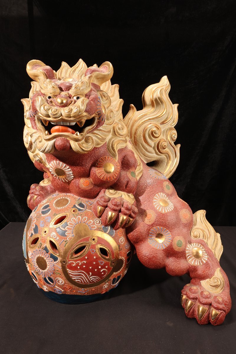 - 【珍品堂】1円から X89-P12 九谷焼 玉乗獅子 置物 色絵金彩 縁起物 魔除け 財運金運 古美術 骨董品