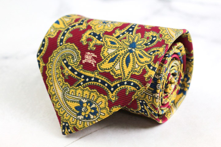 - バーバリーズ ブランド ネクタイ ホースマーク 総柄 ペイズリー 幾何学模様 シルク PO メンズ ワインレッド Burberrys