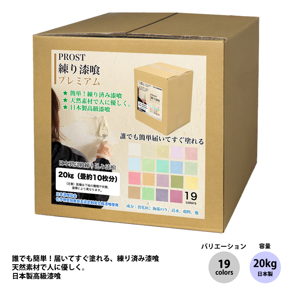 - 簡単!練り漆喰プレミアム 全19色 20kg(畳10枚分 16.5m2)/PROST 練済み漆喰 日本製 左官 塗り壁 漆喰 ペイント Z28