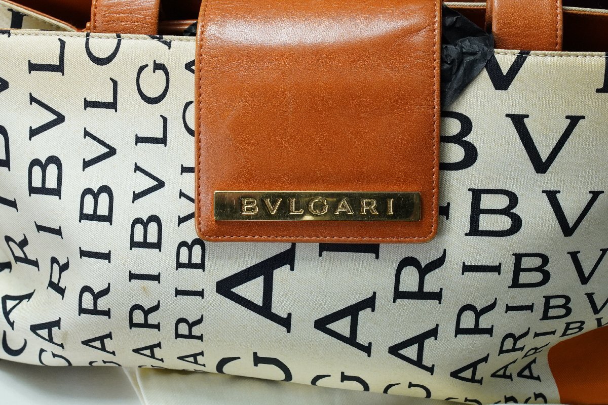 - A&P BVLGARI:ブルガリ:セミショルダ-BAG:総柄プレ-ト:SILKレザ-:ホワイト:袋:高島屋箱付:シミ有」