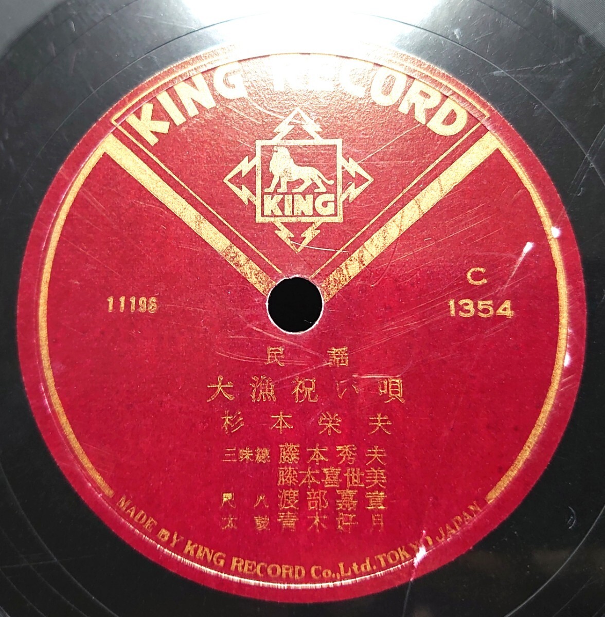 - 【SP盤レコード/薄ヒビ剥】KING RECORD 1354 民謡/大漁祝い唄/相馬二遍返し/杉本栄夫