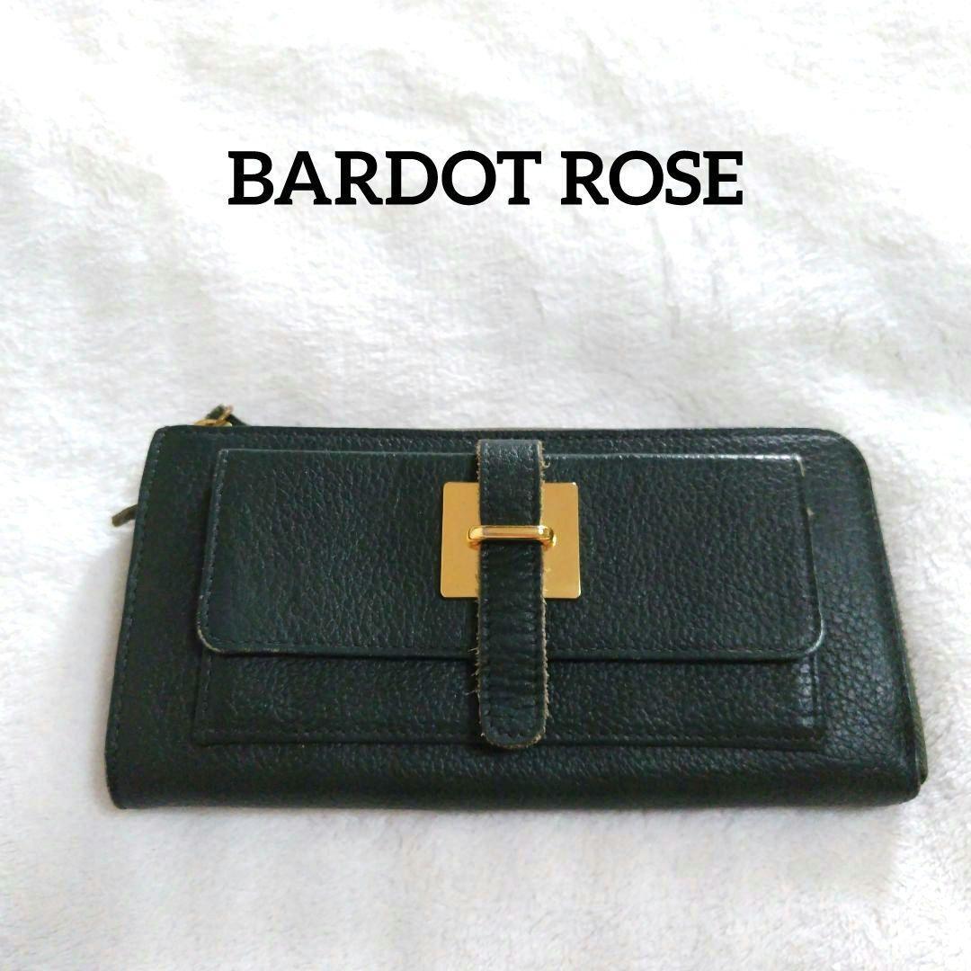 > BARDOT ROSE バルドロゼ 長財布 ゴールド金具 レザー ベルト コンチョ 緑 ジッピー L字ファスナー シボ革 ロングウォレット ダークグリーン
