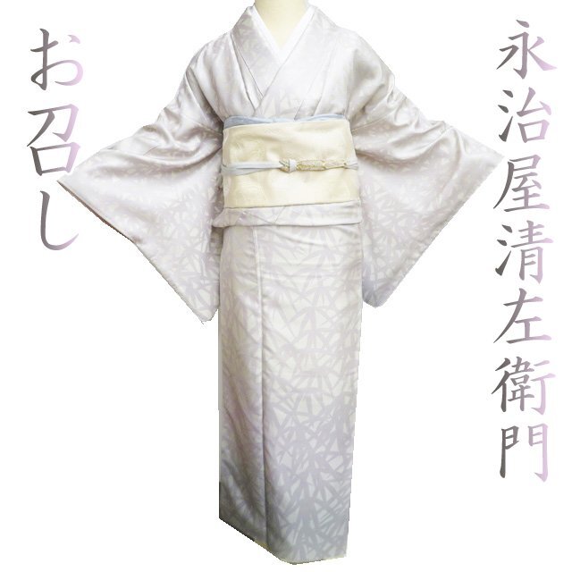 > 特選 お召し 御召 着物 中古 正絹 袷 永井織物 永治屋清左衛門 笹模様 暈し 砂色 多色 身丈162.5cm 裄68cm M きもの北條 A1280-7