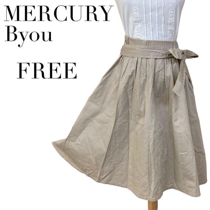 - 人気 マーキュリービジュー MERCURY Byou フレアスカート ウエストギャザー ベルテッド ベージュ フリーサイズ