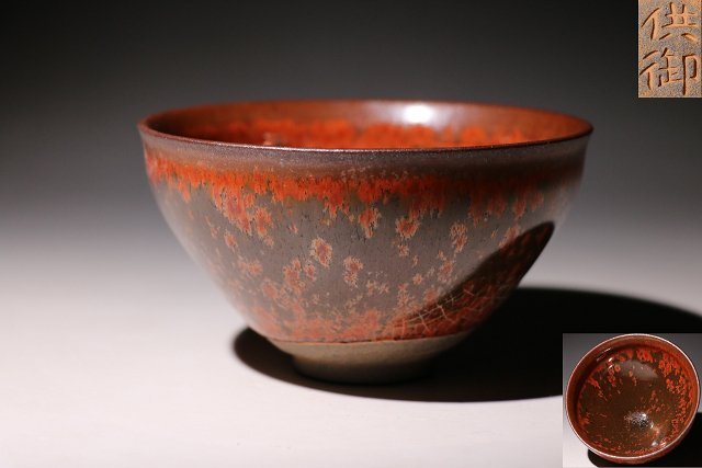 > ☆寒椿☆天目茶碗 供御 直径約12.7cm (検)紅釉 窯変釉 茶碗 茶道具 茶器 唐物 中国美術 古玩 骨董品