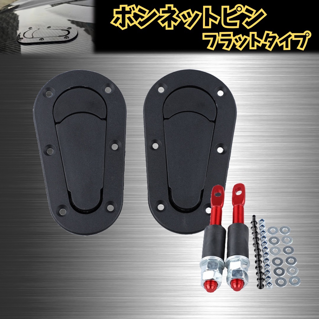 > フラット タイプ ボンネット ピン ボンピン エアロキャッチ 車検 対応 キャッチ ロッド 鍵 無し 浮き上がり 防止 汎用 ブラック
