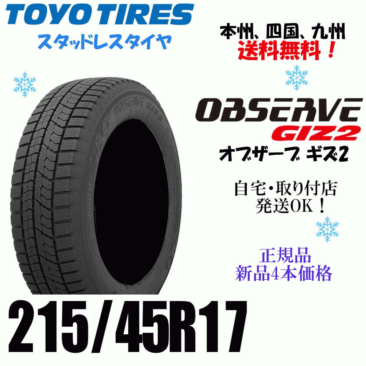 - 215/45R17 87Q 送料無料 新品 4本価格 トーヨー オブザーブ GIZ2 OBSERVE ギズ2 スタッドレスタイヤ 個人宅 ショップ 配送OK