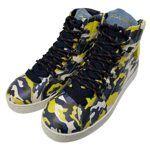 - 未使用 ドルチェ&ガッバーナ CS1247 ドルガバ D&G ハイカット スニーカー カモフラ ネイビー イエロー DOLCE&GABBANA[サイズ5.5(約24.5cm)