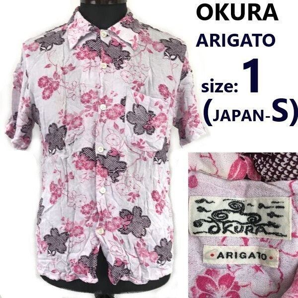 > OKURA/オクラ/ARIGATO★かりゆしウェア/半袖シャツ【1/メンズS/花柄/pink】Japanese aloha/Shirts/Tops/HOLLYWOOD RANCH MARKET◆TBH978