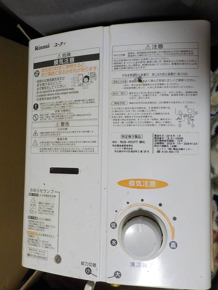- Rinnaiリンナイ 瞬間湯沸器 RUS-V53YT(WH) LPガス用 給湯器 リンナイ 中古品