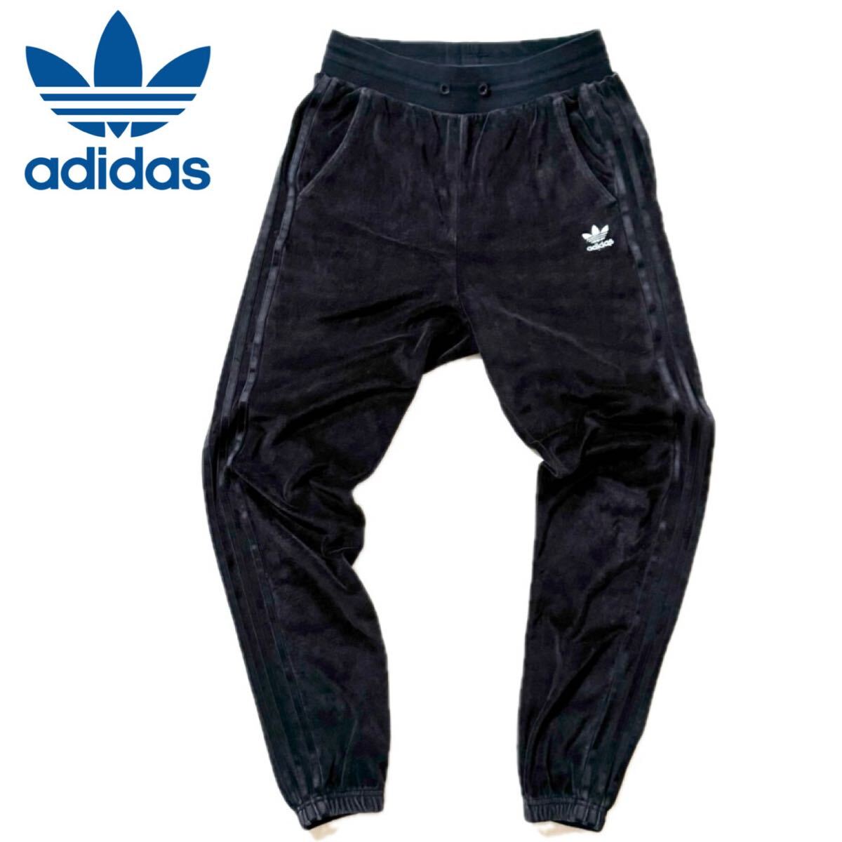 - adidas★FB TP★アディダス ファイヤーバード ベロア トラックパンツ 刺繍ロゴ ブラック×ブラック レディースM