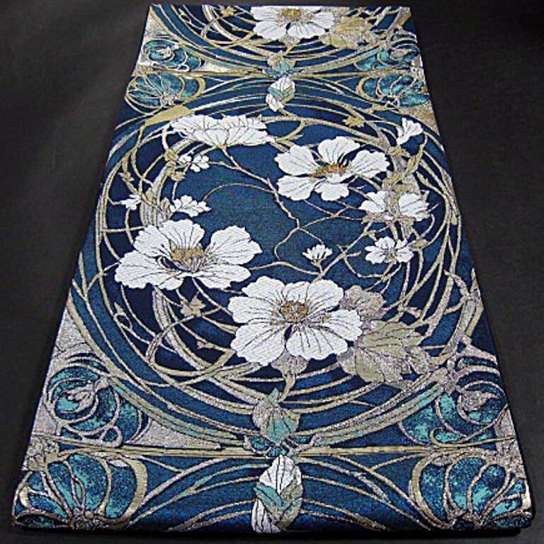 - 新柄 新品未仕立 西陣織六通柄高級袋帯 アールヌーヴォーの花