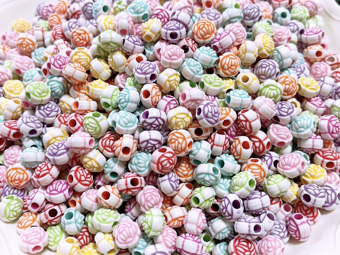 > 送料無料!同梱OK!取置2週間☆*【約10㎜×9㎜】【大量セット約500g・900個以上】*薔薇・お花型*艶消しビーズ*カラフル*27*即決!