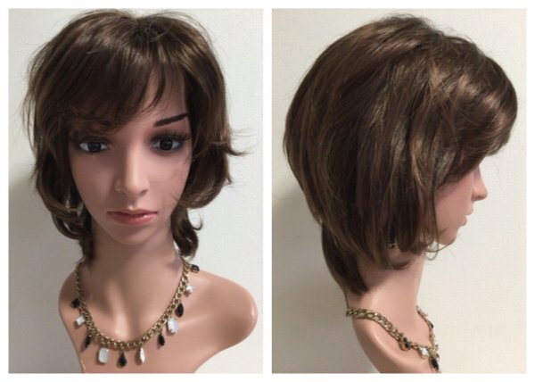 - WG202-1 展示品 人毛100% ウイッグ・ウエーブショート 栗色 ショート おしゃれウイッグ 白髪隠し