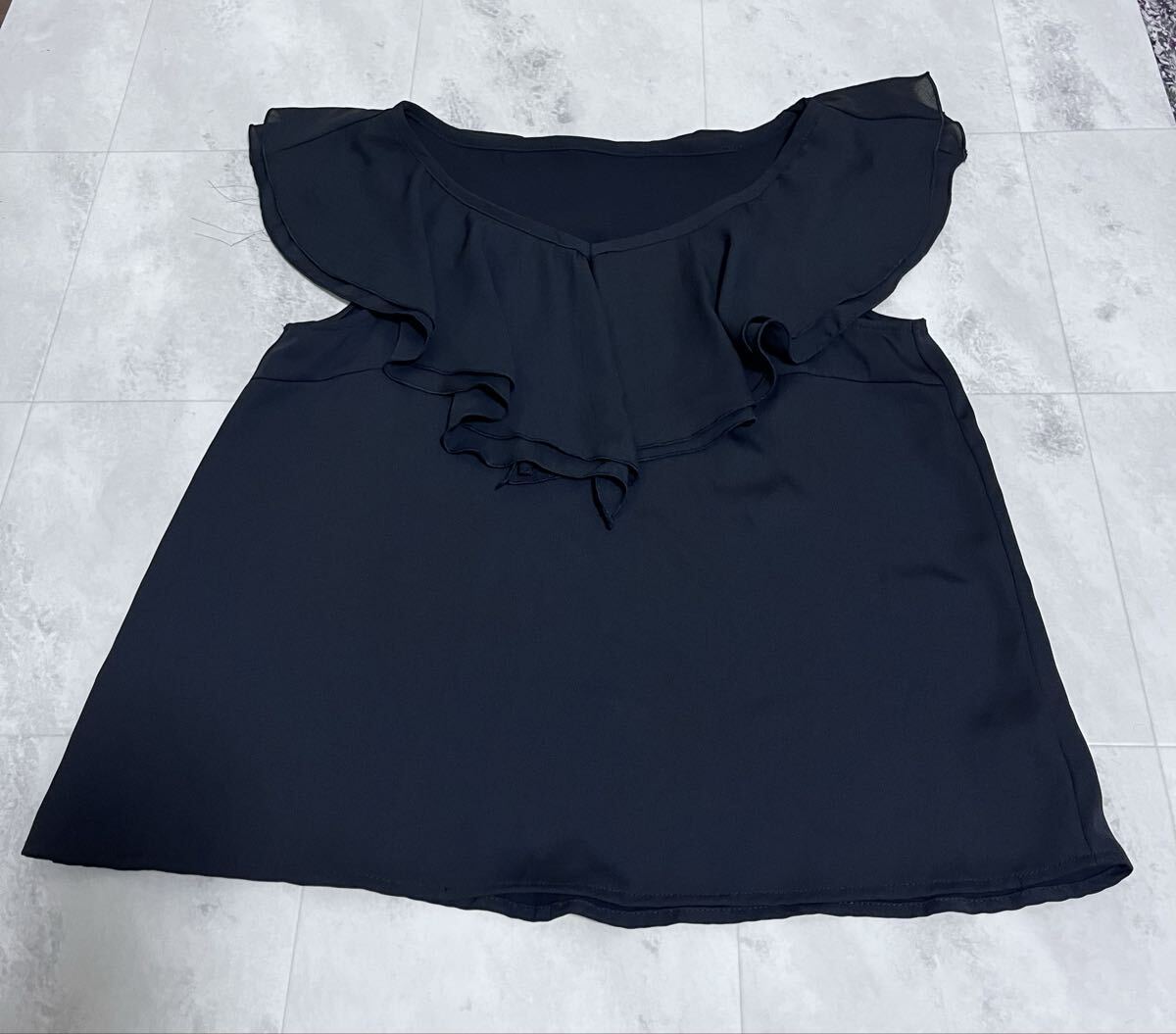 - INGNI イング 黒 シフォン*レディース*トップス*フリル袖* ブラック 黒 Mサイズ カットソー